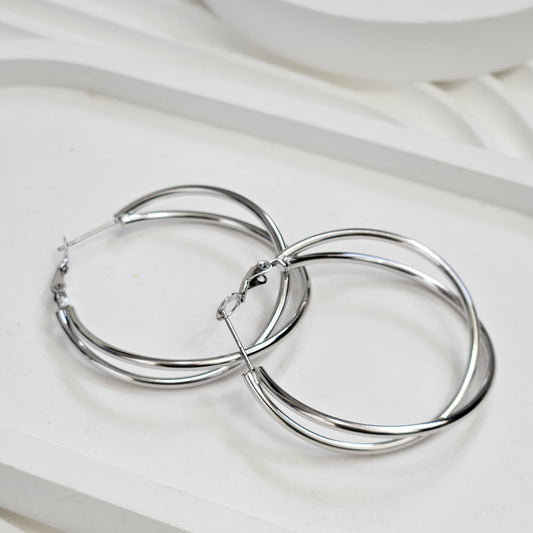 Double Attached Hoop Earrings - Silver