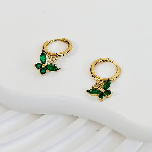 Green Dangling Butterfly Earrings