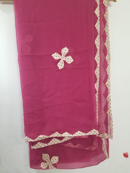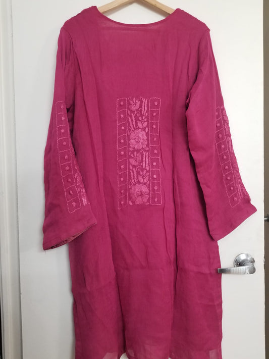 Kameez Shalwar (3 pc) - Fancy Hand Embroidered Chiffon Suit- Dusty Magenta