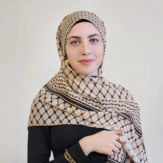 Keffiyah Chiffon Hijab - Chocolate Brown & Cream