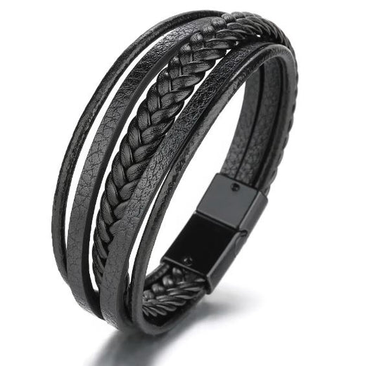 Braided Layered Leather Bracelet | Men