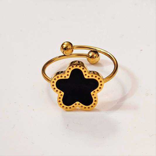 Black Adjustable Flower Ring