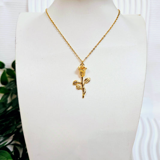 Single Rose Necklace - Gold
