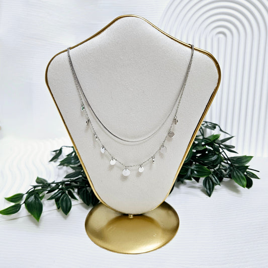 Double Layered Dangle Disc Necklace - Silver