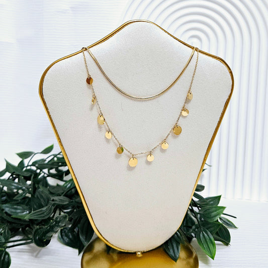 Double Layered Dangle Disc Necklace - Gold
