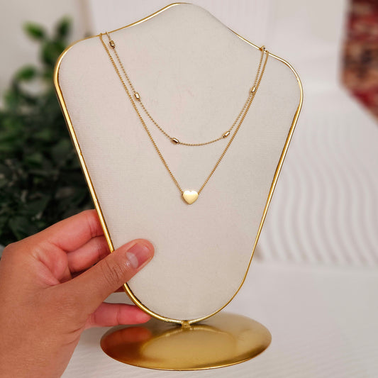 Double Layered Heart Dotted Necklace - Gold