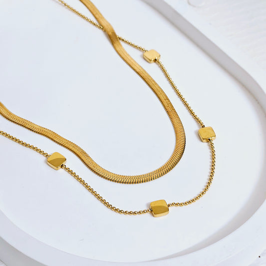 Double Layered Rectangle Necklace - Gold