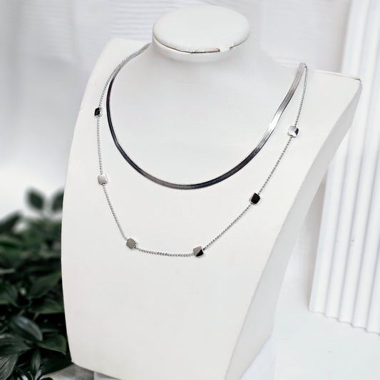 Double Layered Rectangle Necklace - Silver