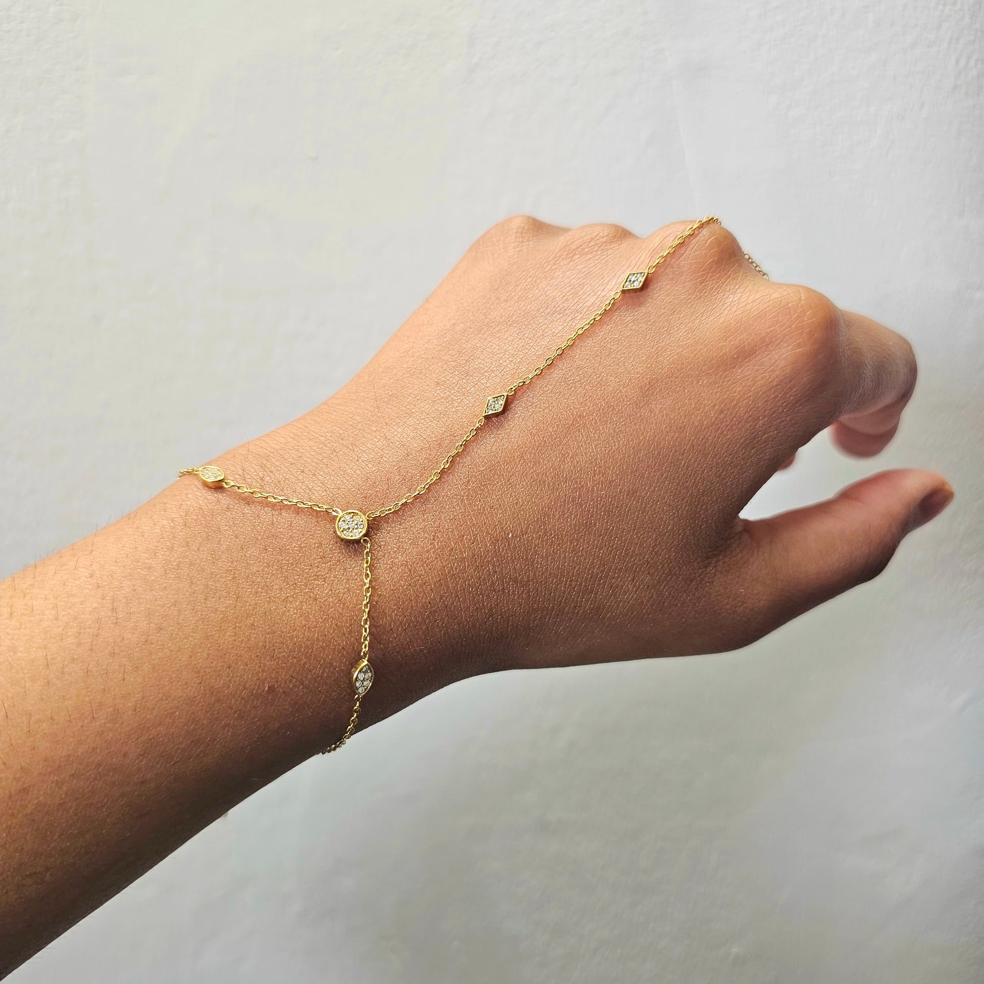 Fits small to large hands comfortably with a 5 cm extension chain. Adjustable from 16 cm to 20 cm around the wrist.