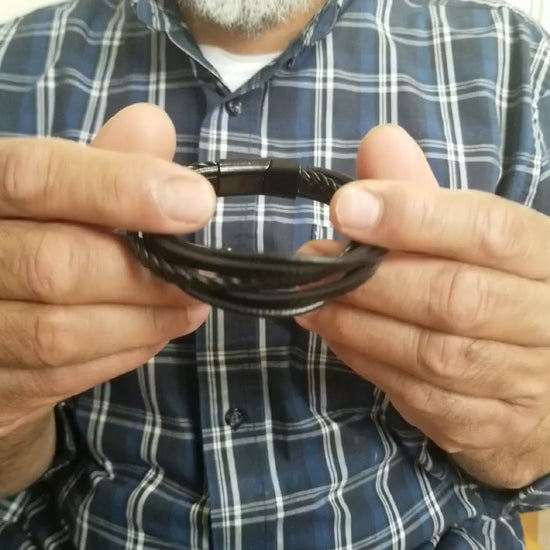 This intricate Braided Layered Leather Bracelet adds a touch of cool style to any look. Its unique braided design and layers of genuine leather are sure to be a conversation starter. With a secure male clasp, you can feel confident it won't slip off.