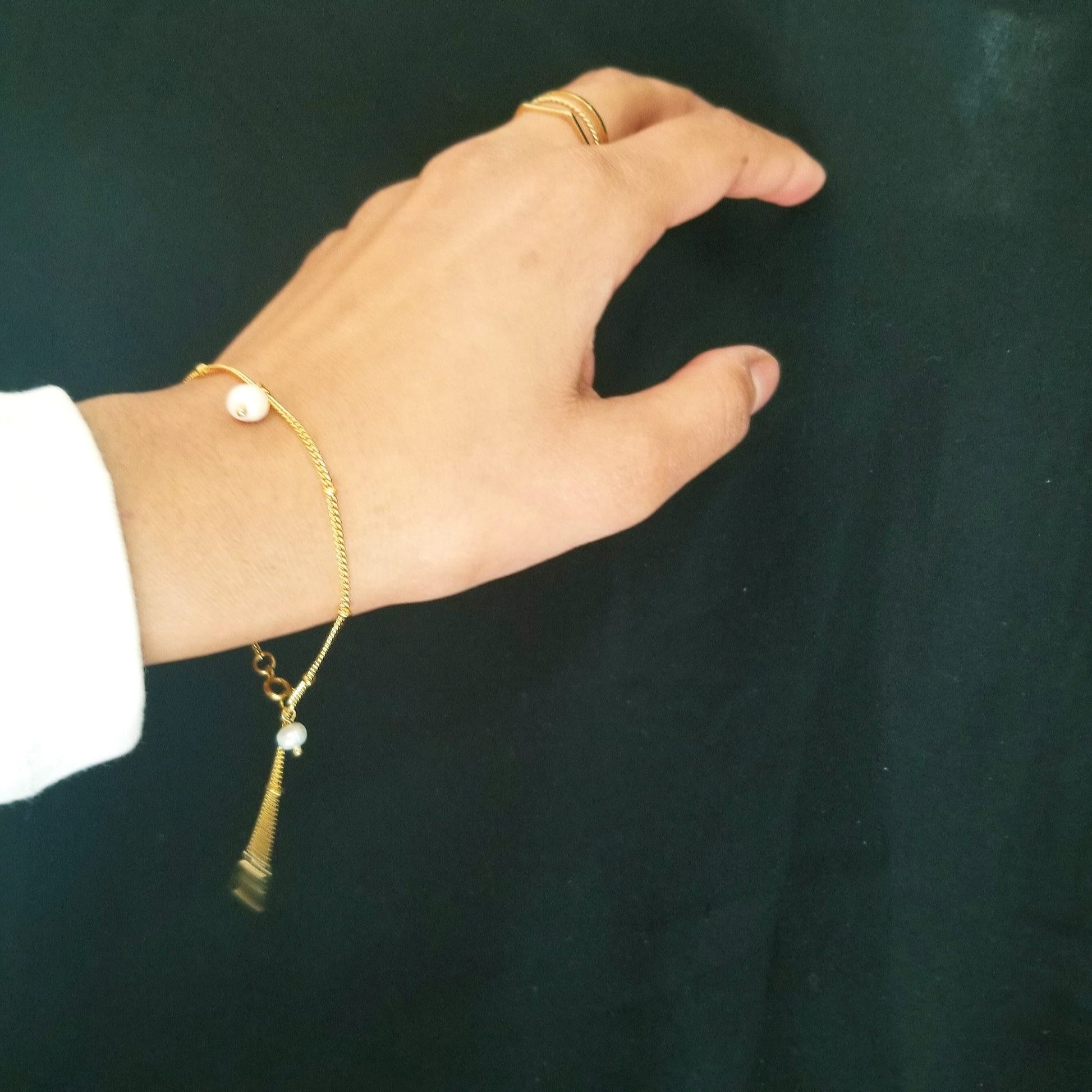 Real Freshwater Pearl & Stainless Steel 18 K Gold Plated Chain