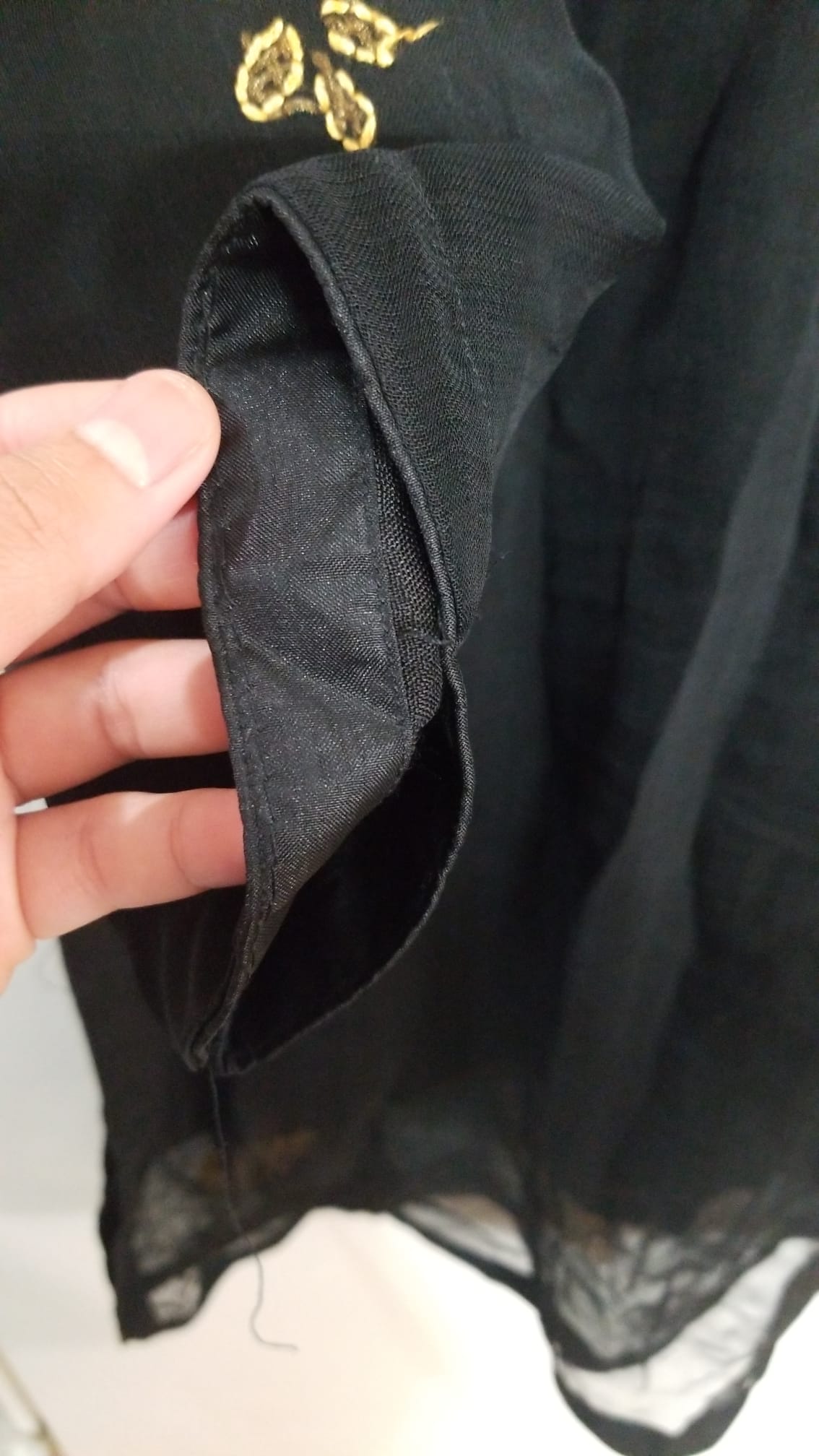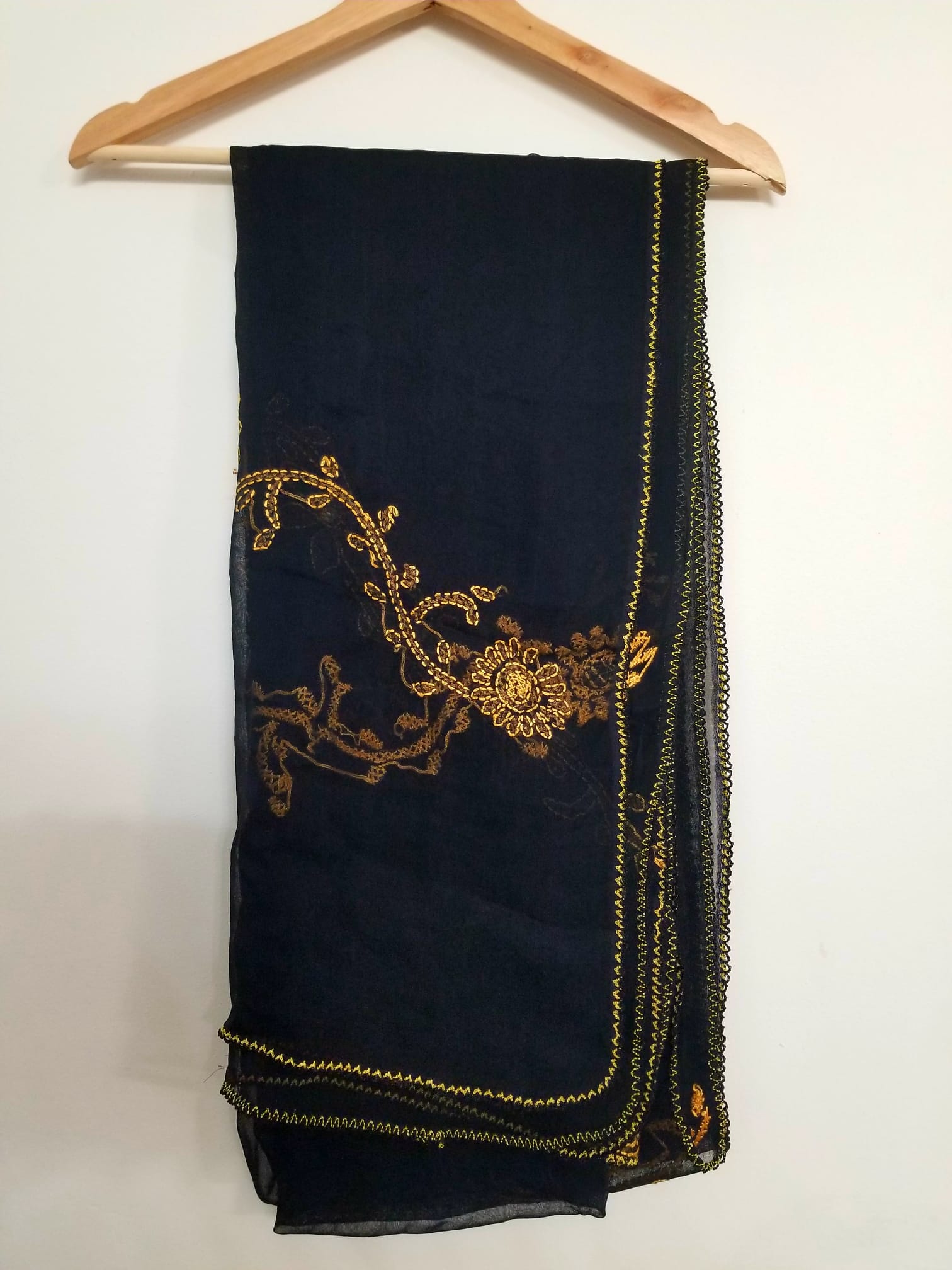 This classy Black Color Chiffon Suit is a 3 piece set. It is elegantly hand embroidered, and fully lined on the entire arms and body with a very soft material. The dupatta is also hand embroidered and made fully hemmed beautifully on all sides. The shalwar is made with a strong and soft viscose fabric, which makes it perfect for all seasons!