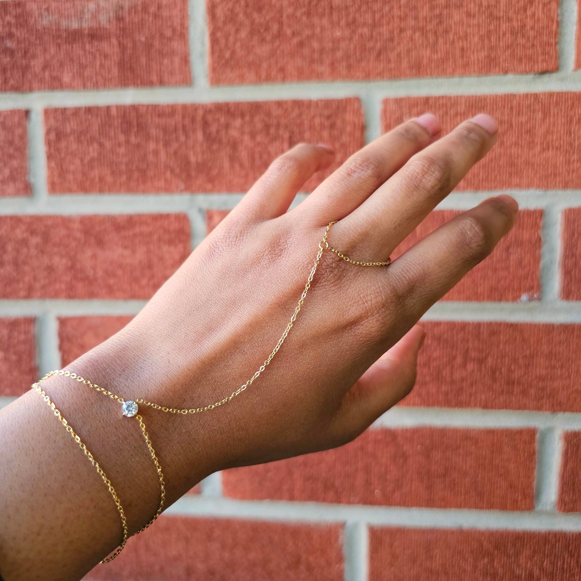 Dainty Single Gem Double Hand Chain - Gold & Silver