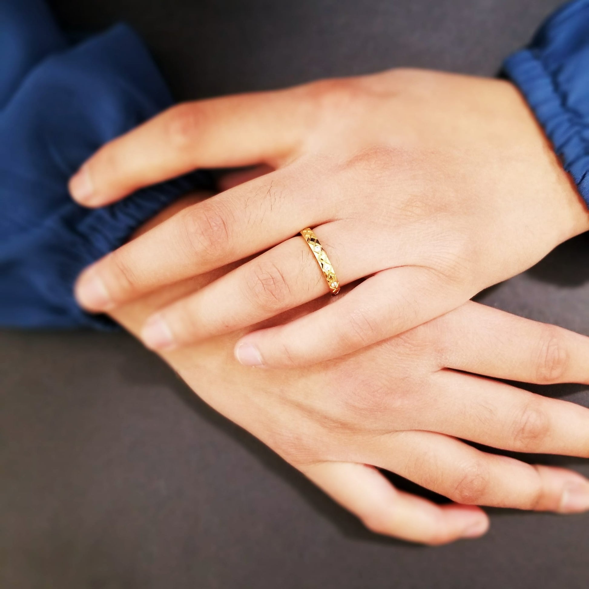 Daydream is perfect for the best of occasions, yet still works perfect for the everyday. It is topped with five Zircon gems coupled with a luxurious engraved criss-cross look.