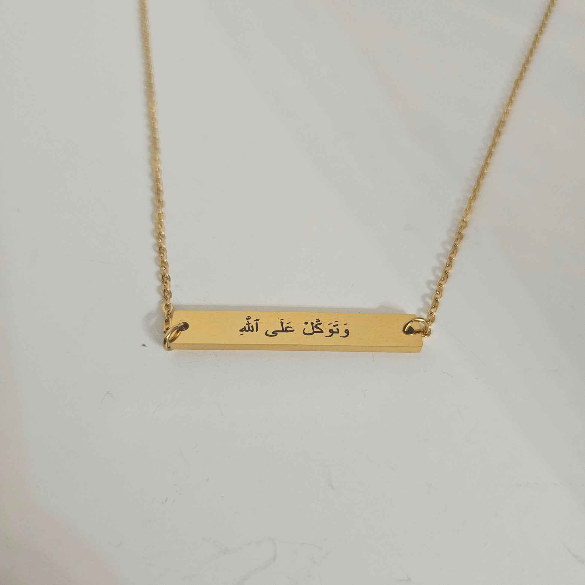 Gold Plate Bar Necklace - And Place your Trust in Allah