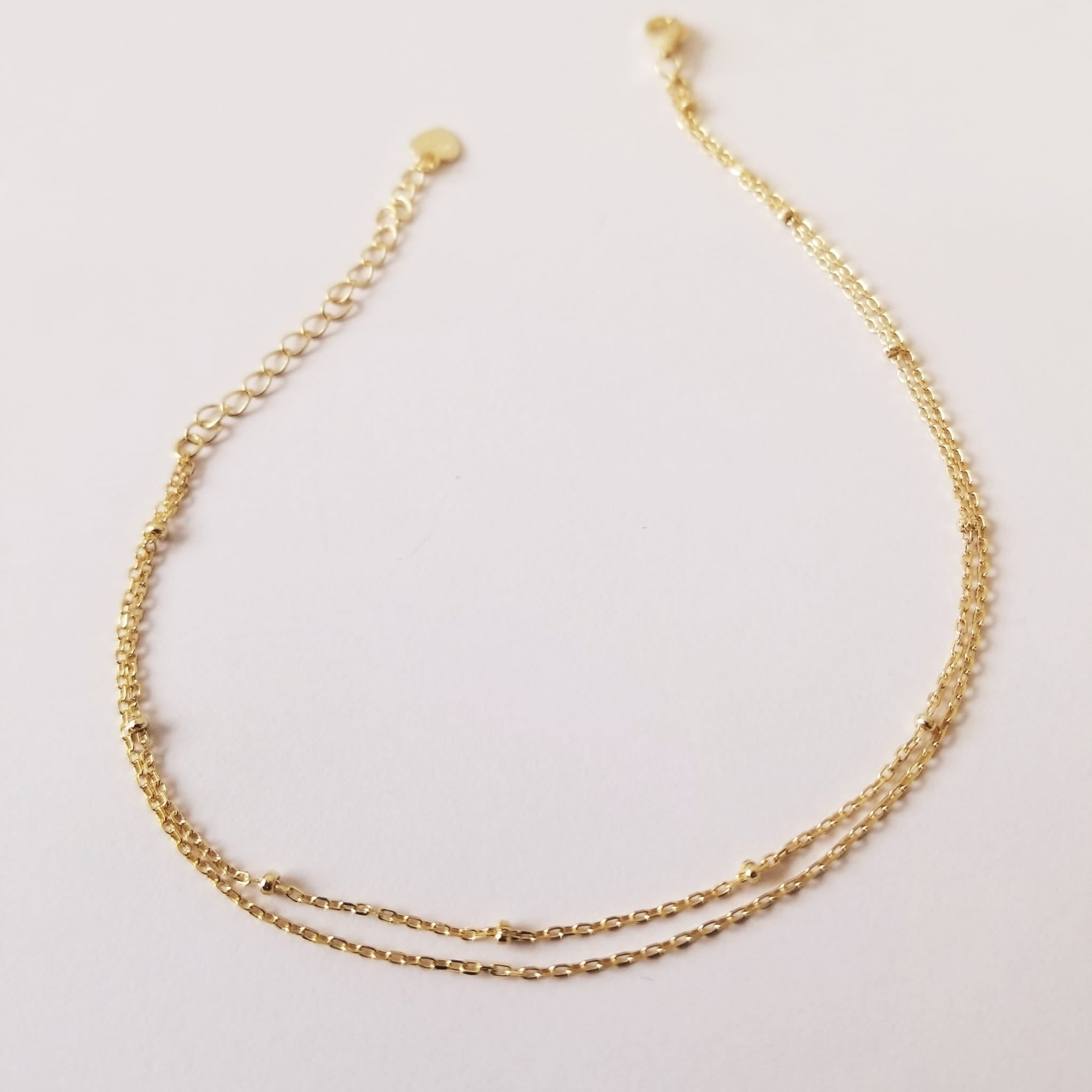 This Layered Dotted Anklet is an elegant piece of jewelry made with a delicate design that can withstand everyday wear. It features two layers of tiny dots, held securely together by a simple but stylish fastening. A perfect choice for any occasion.