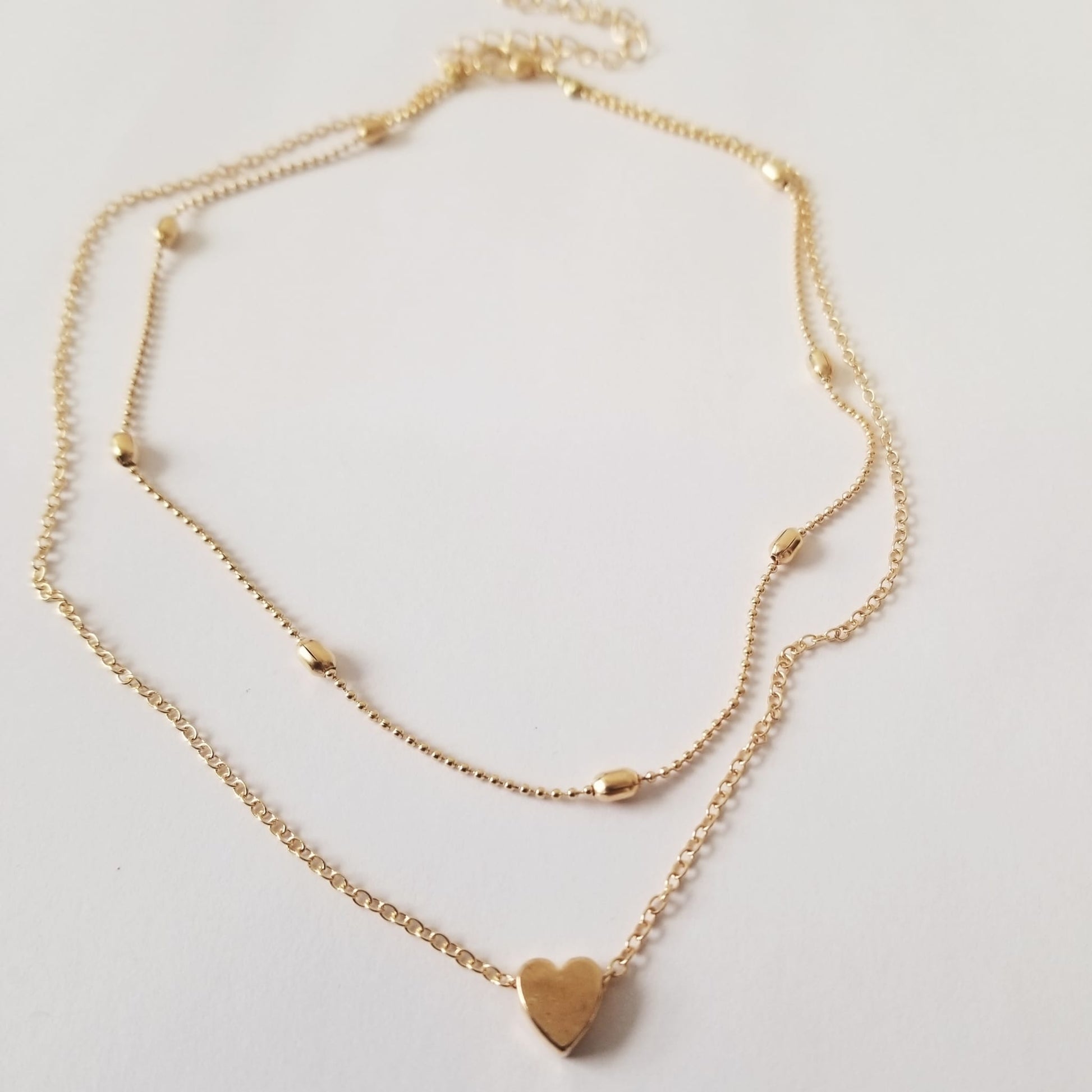 This layered heart choker necklace features a double-layered design for a chic, timeless look. Beautifully crafted, it's the perfect accessory for any occasion.