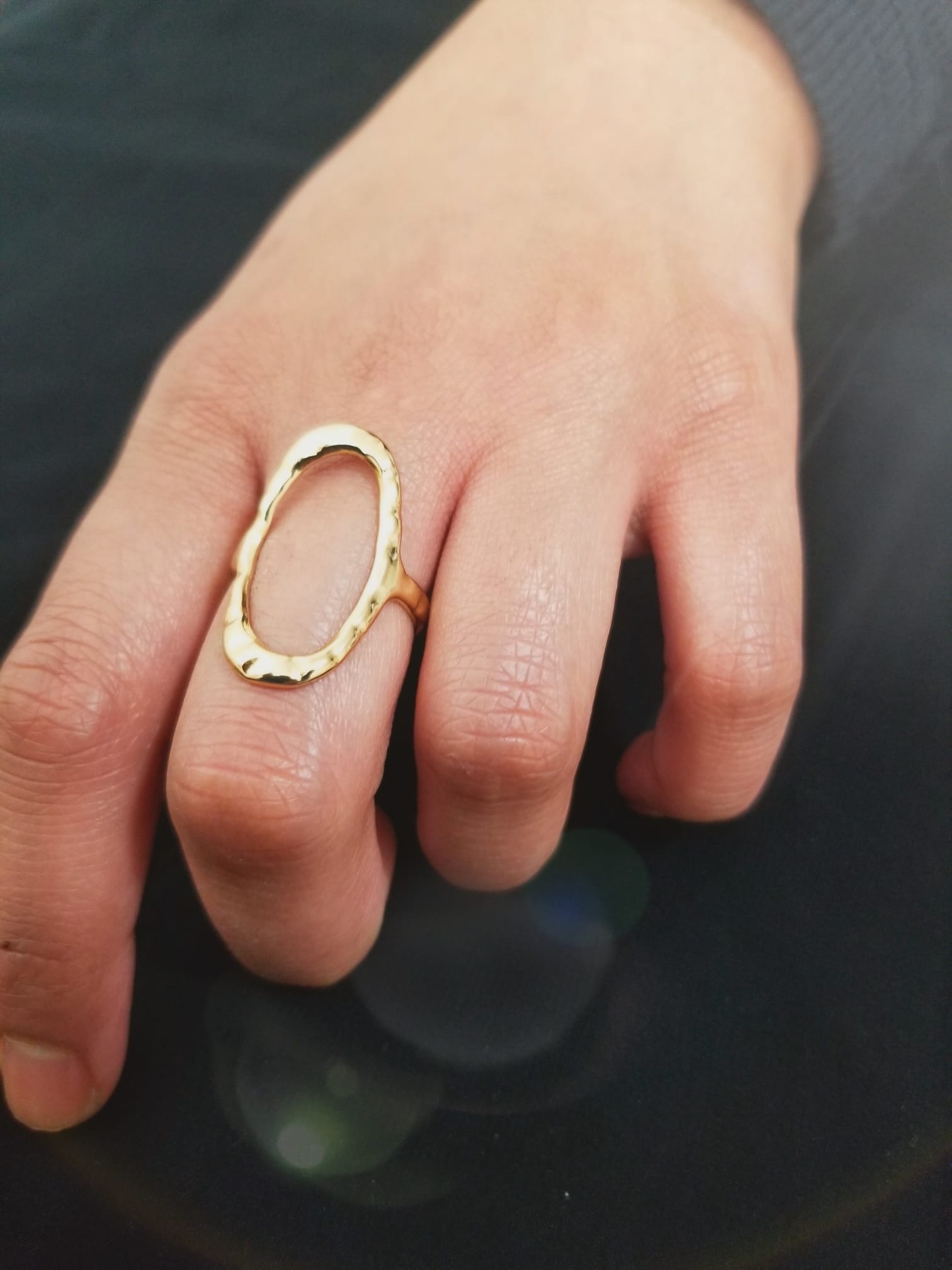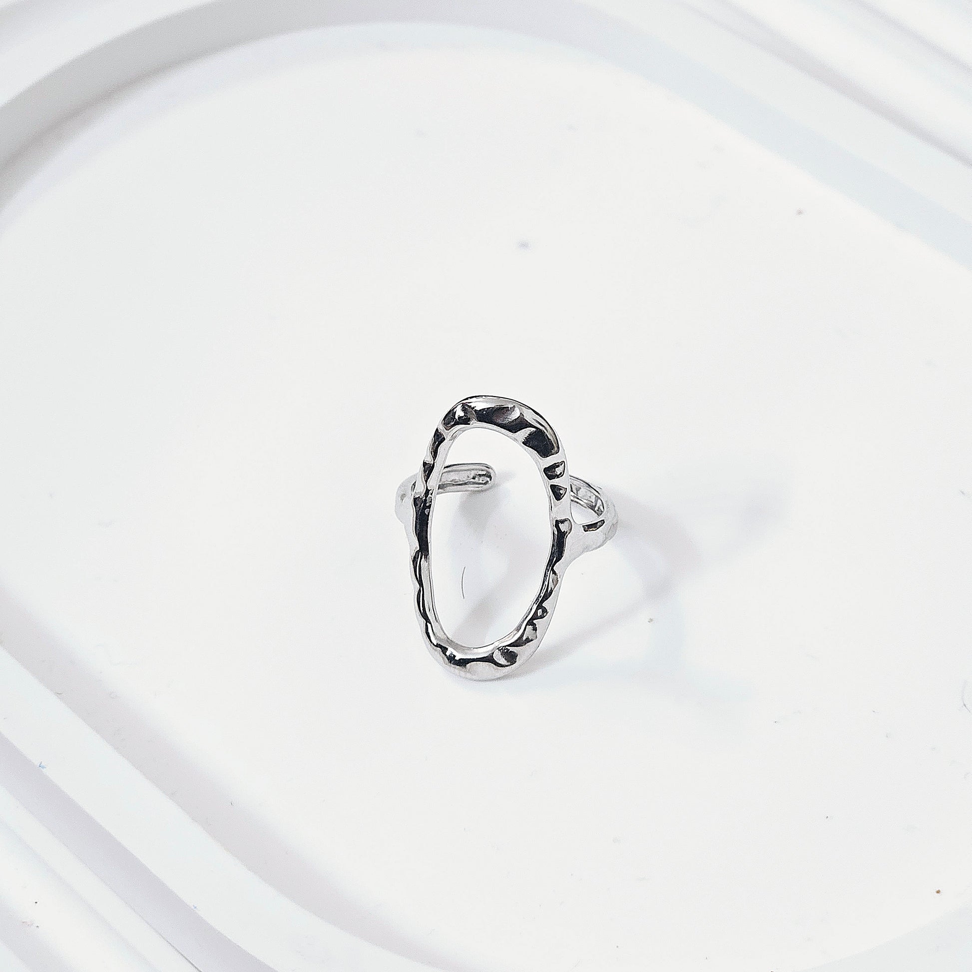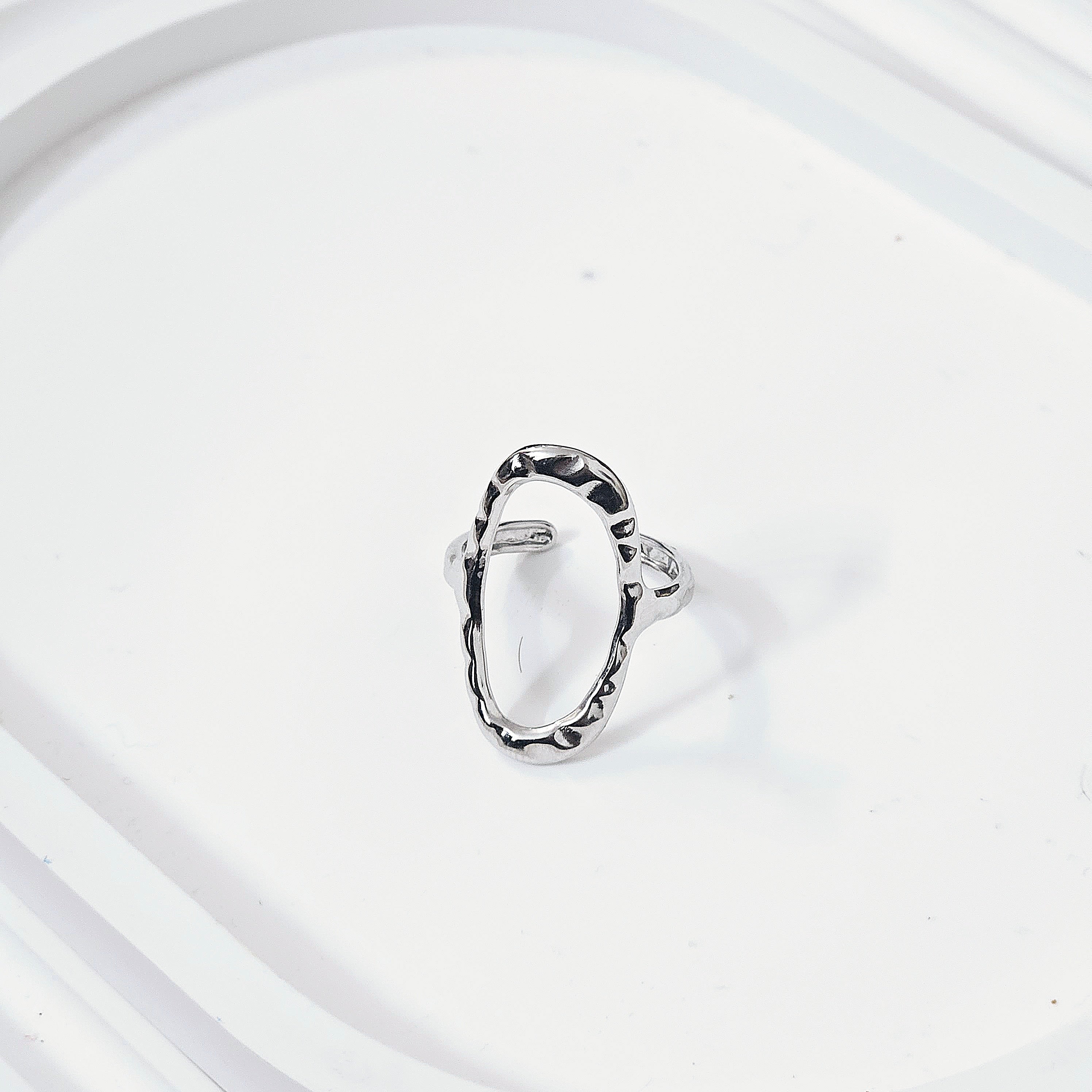 This unique Oval Hammered Ring is crafted with a modern hammered texture to add a touch of contemporary style to any outfit. Its oval shape is perfect for everyday, casual wear as well as professional settings.