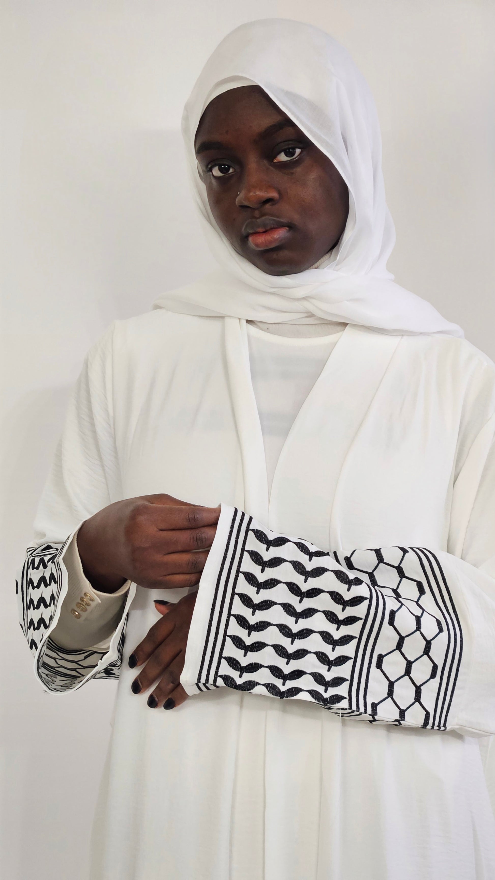Palestine Keffiyeh Abaya - White & Black Embroidery