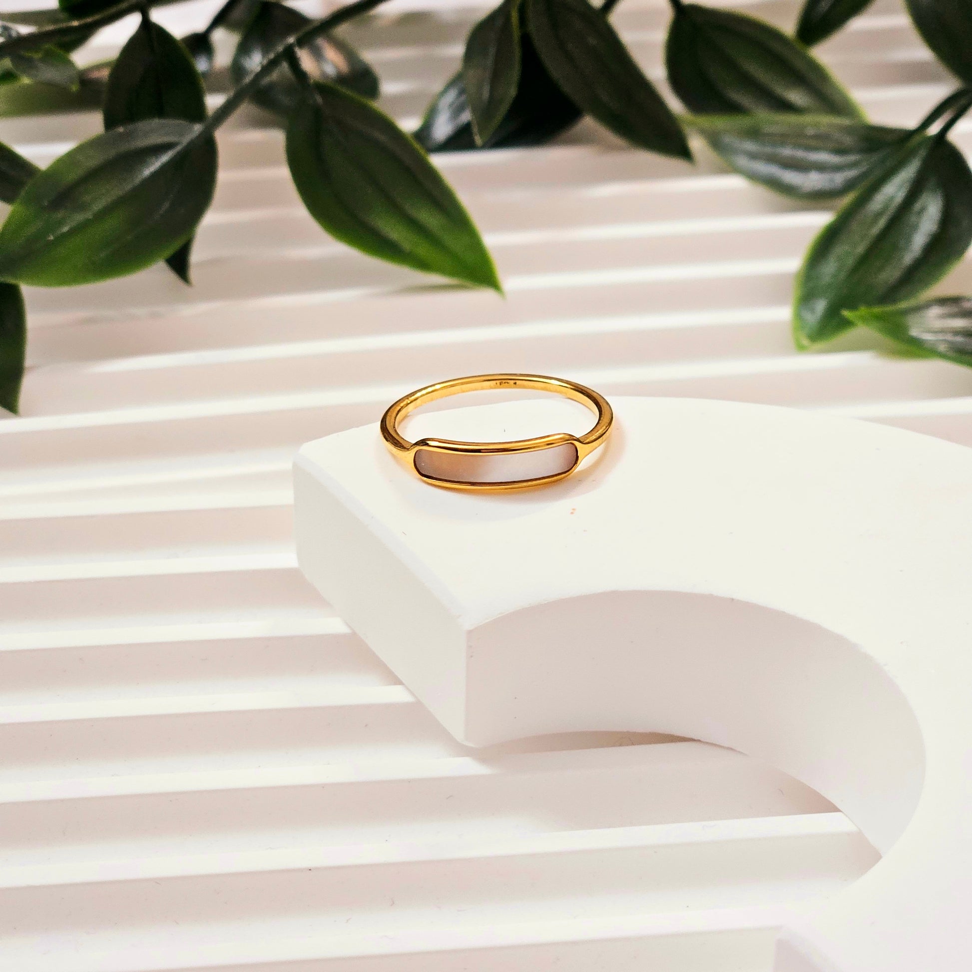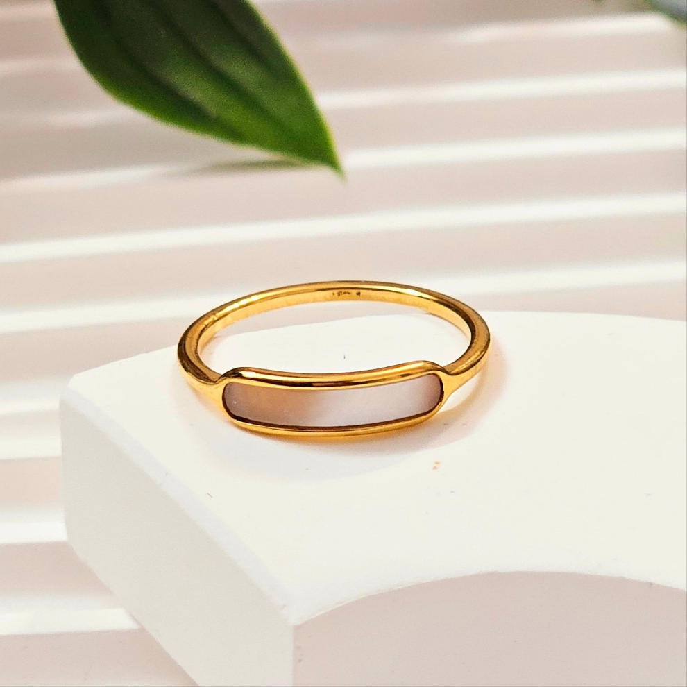 Beautiful and dainty, the White Shell Kera Ring is an everyday essential for women and girls. Crafted with a gorgeous white shell section in the middle, this ring is an ideal addition to any jewelry collection.
